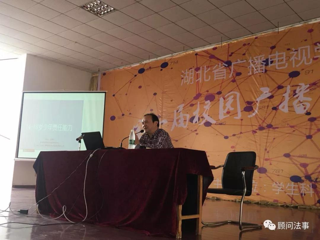 2018年4月11日,北京盈科(武汉)律师事务所罗德江律师,赴湖北广播电视学校开展法制专题宣讲,围绕“14-18周岁少年责任能力”这一主题,分析青少年应当承担的民事责任和刑事责任,并结合自身经历,勉励青少年成才先成人,胸怀理想,努力奋斗。据悉,讲座由刘校长主持,在校的600多名师生全部参加。
